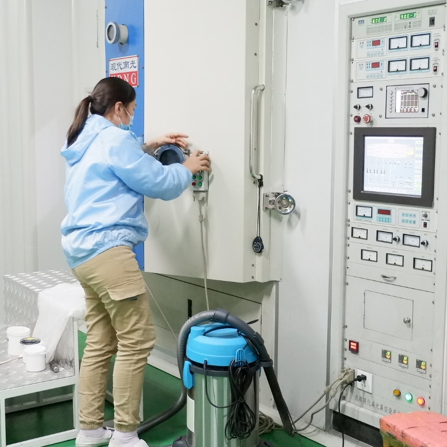 公司技術(shù)力成熟,擁有原料攪拌機(jī)、激光切割機(jī)、玻璃切割機(jī)、超聲波清洗機(jī)、真空鍍膜機(jī)、磨邊機(jī)、清洗機(jī)、激光打字機(jī)、包裝機(jī),以及Lambda950分光光度計(jì)、ADFs光色號(hào)響應(yīng)時(shí)間測(cè)試儀、及各類研發(fā)試驗(yàn)設(shè)備三百余臺(tái)。